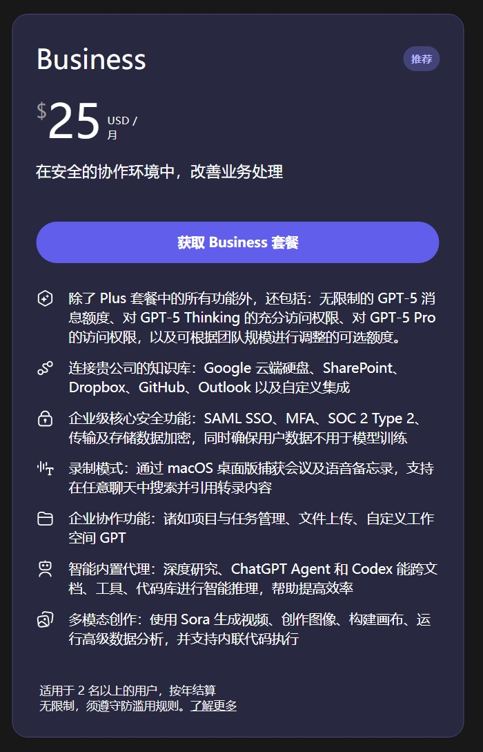 【自动发货】ChatGPT Team Business会员 代开 代充50一位/1个月,质保一周,翻车退款